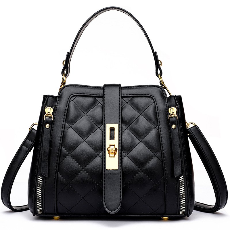 SL-大容量百搭单肩斜挎包软PU纯色简约水桶包包